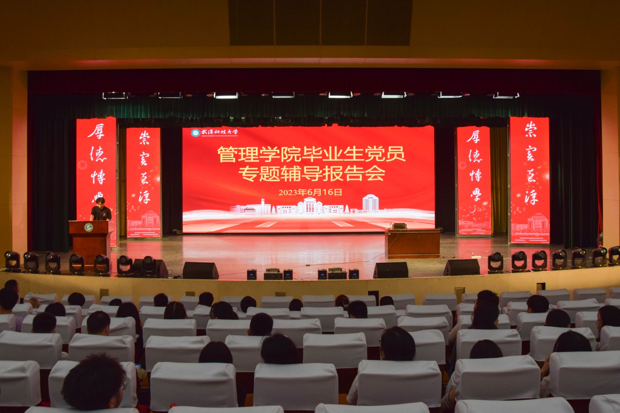 武科大网讯(通讯员刘伊扬 石雨荷)为进一步加强对毕业生党员的教育引导,倾听毕业生党员的声音,6月16日晚,新葡萄官网在千人大礼堂召开毕业生党员专题辅导报告会。我校纪委、监察专员办纪检监察办公室主任蔡鉴、新葡萄官网党委副书记毛晓丹、新葡萄官网团委老师谭武全、新葡萄官网团委老师薛知奇、新葡萄官网2022级辅导员老师窦薇及学院全体2023届毕业生党员参加此次会议,会议由薛知奇主持。