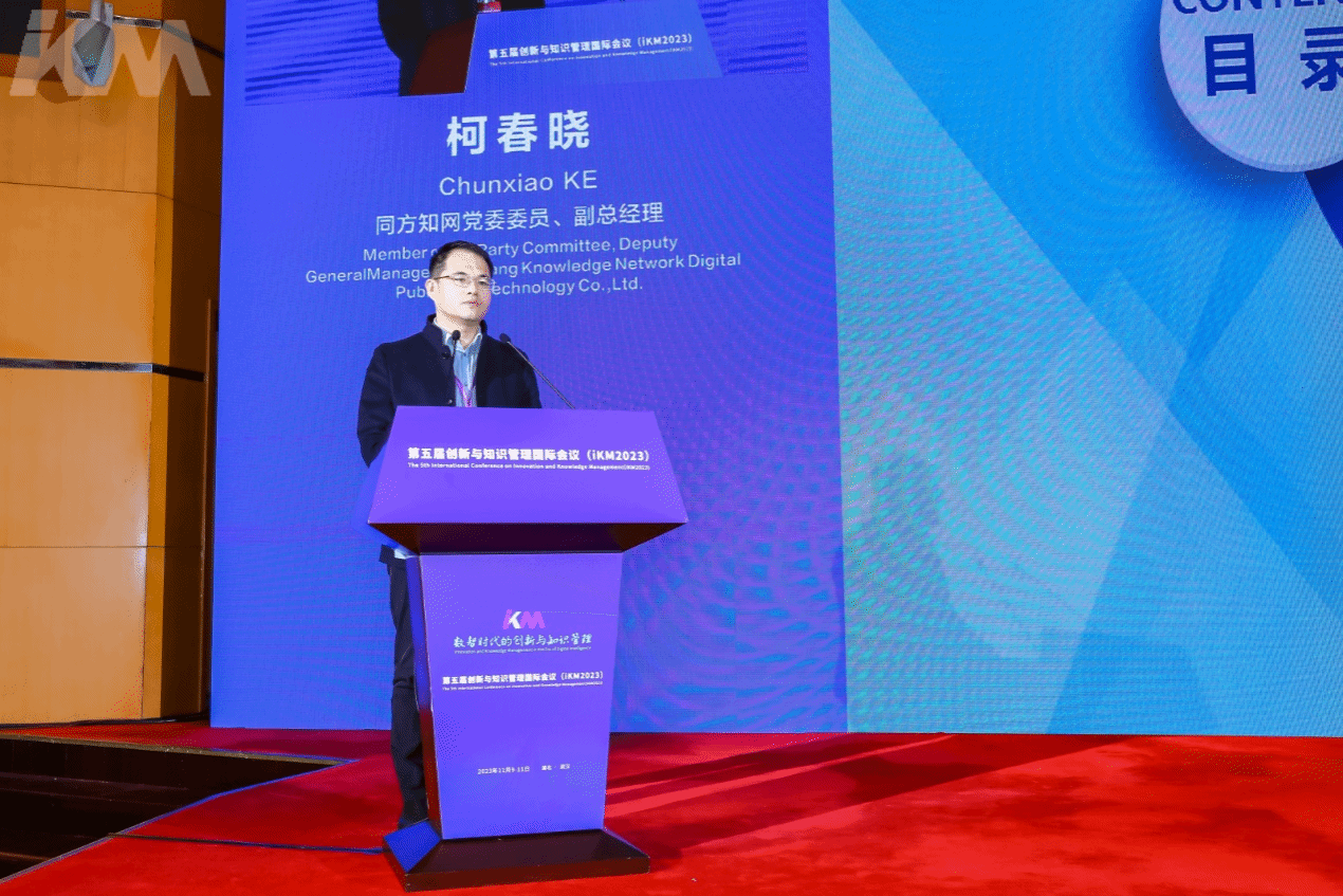同方知网党委委员、副总经理柯春晓就“数据资产化与知识管理”为主题开展演讲。对数字资产化的内外因素、实施对象、实施路径以及数字资产化的KM方法展开细致的研究分析。