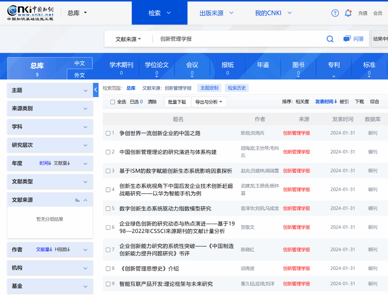 2024年7月,中国知网的大力支持下,首期《创新管理学报》全文被中国知网(CNKI)全文收录。