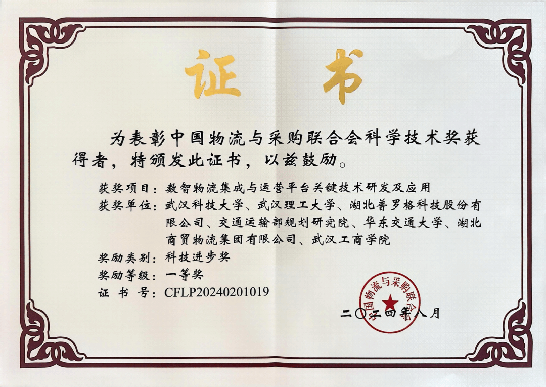 9月4日,由中国物流与采购联合会(简称:中物联)与合肥市人民政府联合主办,中国物流信息中心、合肥市发展和改革委员会等共同承办的2024现代物流科技创新与枢纽经济发展大会在安徽合肥召开,会上揭晓了“2024年度中国物流与采购联合会科学技术奖”获奖名单,由我校新葡萄8883官网AMG官网教师王勇主持的“数智物流集成与运营平台关键技术研发及应用”获科技进步一等奖(证书编号:CFLP20240201019)。
