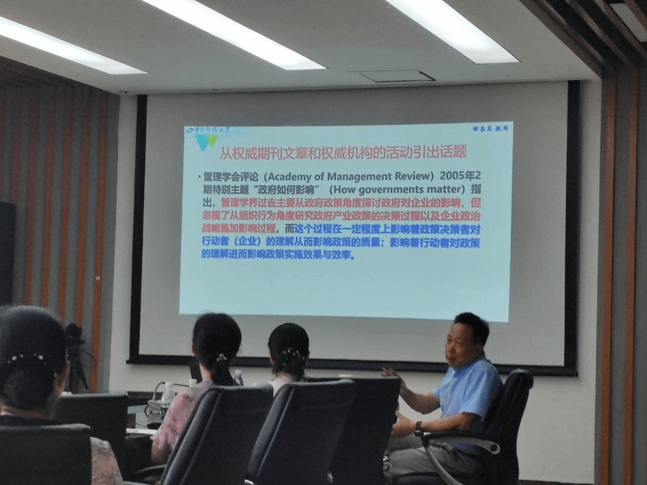 讲座上,田志龙教授以其深厚的学术造诣和丰富的科研经验,作题为《关于工商管理学硕士论文选题的几点思考》的主题报告,进行深入浅出的讲解。他首先明确了选题的思路和要求,指出选题的一般思路,以及确定选题前需要了解的注意事项;随后田志龙教授结合自己及团队的研究案例,分享了学术论文选题的基础训练;最后他介绍了论文的三个闭环分为研究闭环、实践闭环和理论闭环。