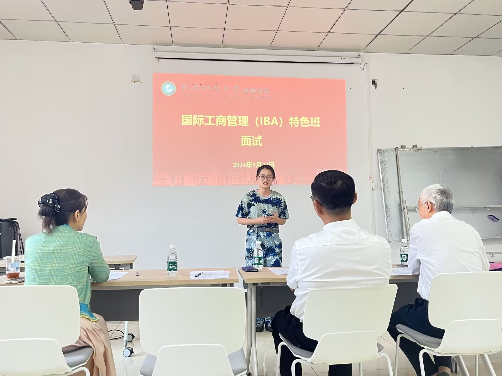 武科大网讯(通讯员张雨婷)为培养和组建新一届国际工商管理(IBA)特色班,培养具有国际化视野的管理英才,经学院统一笔试考核环节后,学院于9月24日在教八楼525教室召开国际工商管理(IBA)特色班面试环节,本次面试由副院长黎精明、2024级IBA班班主任刘勇、2024级香涛班班主任张云川担任评委。