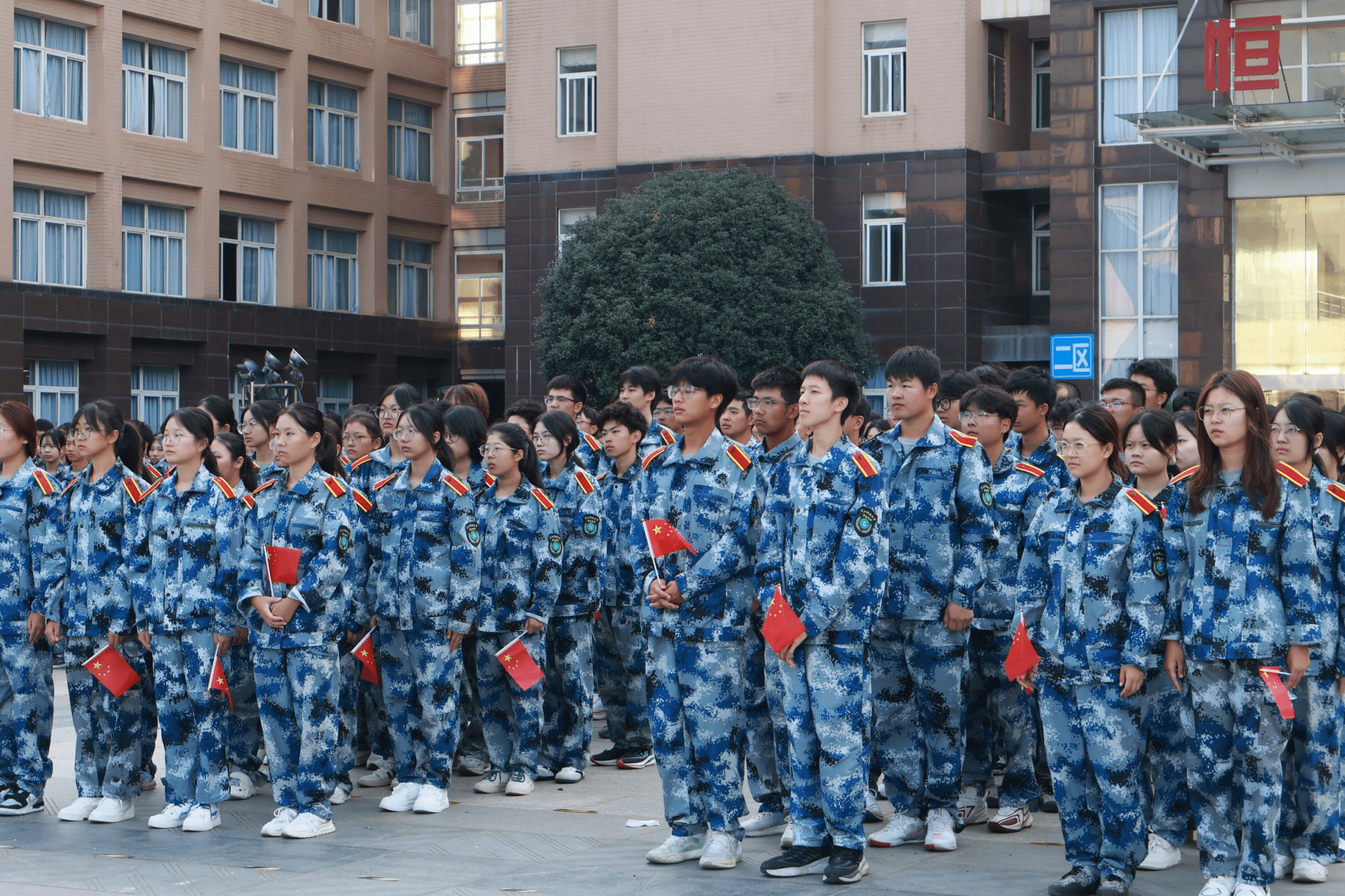 全场肃立,升旗仪式正式开始,护旗手整齐划一、铿锵有力地护送五星红旗走向升旗台,国歌奏响,五星红旗冉冉升起,迎风飘扬,全体师生肃立注目,共同见证这一庄严时刻。2024年9月30日是第十一个烈士纪念日,为缅怀英烈,传承不朽精神,国歌唱毕,全体师生垂首默哀,怀揣着对历史的沉痛回忆和对和平的深切向往,向为中国人民解放事业和共和国建设事业英勇献身的烈士致以哀思。