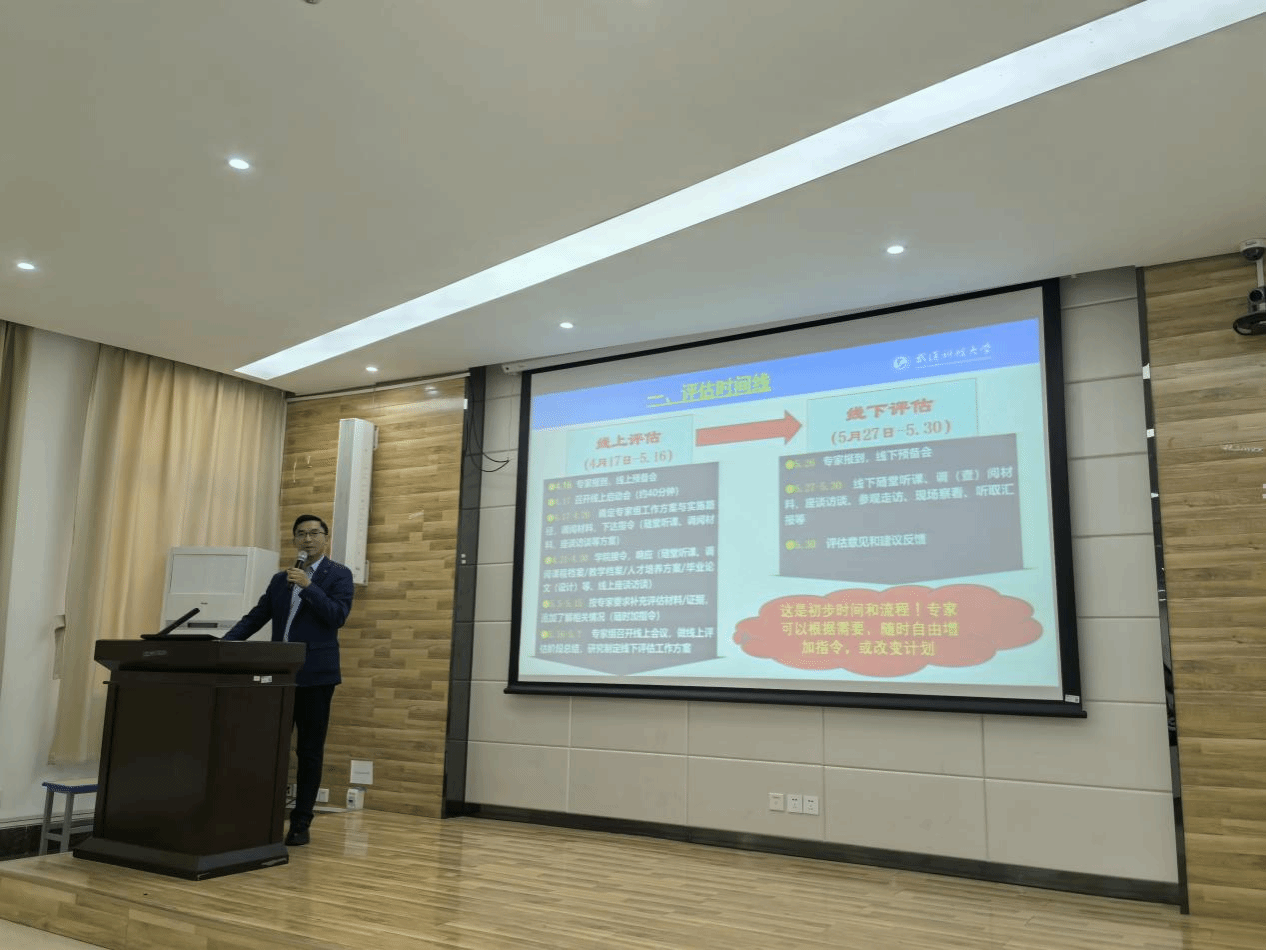 会上,副院长黎精明发表动员讲话,围绕评估时间线、学院评估工作总体部署、评估指令学院快速响应机制、工作面貌与责任四个维度做出全面安排和部署。他对前期迎评准备工作进行了系统总结,对评估的时间安排做了详细说明,对评估期间的各项任务做了细致分工和缜密部署,并提出了具体工作要求。对于涉及广大教师的课堂教学秩序维护与质量提升、教学材料规范化整理、指令快速响应方式等关键问题做了重点安排和部署。