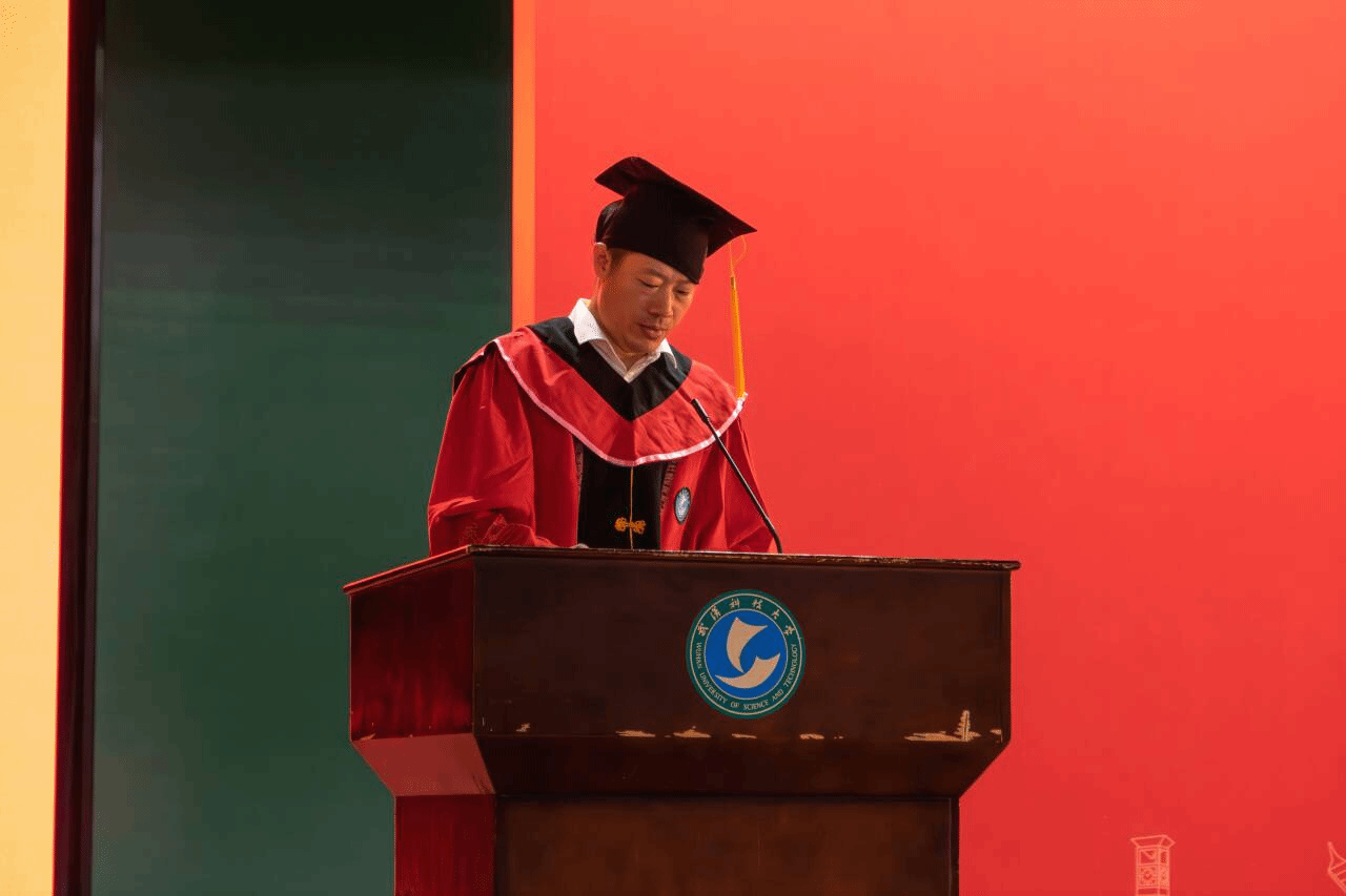 毕业典礼在国歌声中拉开帷幕,刘海兵以《挺膺担当 铸人生之舟乘风破浪》为题寄语全体毕业生,在致辞中,回顾学院与学生共同成长,相互成就的奋斗岁月,对全体毕业生们表示衷心祝贺。刘海兵以“担当”为题,向2025届全体毕业生提出三点期望:一要胸怀家国、志存高远,以投身基层的同学为榜样,将个人奋斗融入民族复兴;二要千锤百炼、厚积薄发,树立终身学习理念,知行合一;三要坚守初心,向阳而生,用定力与韧劲在人生道路上破浪前行。