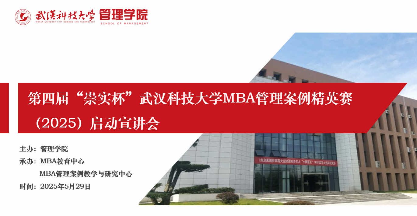 据悉,作为第十一届全国管理案例精英赛(2025)的校园突围赛,本次大赛于5月29日召开启动宣讲会。刘海兵在致辞环节强调了管理案例竞赛在管理类专业学位研究生实践能力培养过程的重要价值,介绍了我校2024级MBA人才培养方案中新增的“案例研究与行动学习”(2学分)的实践环节的背景和目的,对同学们参与此次管理案例精英赛表达了殷切期望。孙伟介绍了第十一届全国管理案例精英赛(2025)的基本情况,重点就我校第四届“崇实杯”MBA管理案例精英赛的比赛规则进行了详细说明。2024年校赛一等奖获奖团队队长李恒(2022级MBA)围绕团队组合、PPT呈现、案例分析及临场发挥等四个方面做了《全国管理案例大赛经验分享》。杨文结合自己作为指导老师和评审专家的经验,对即将报名参赛的同学提了一些宝贵的参赛建议。