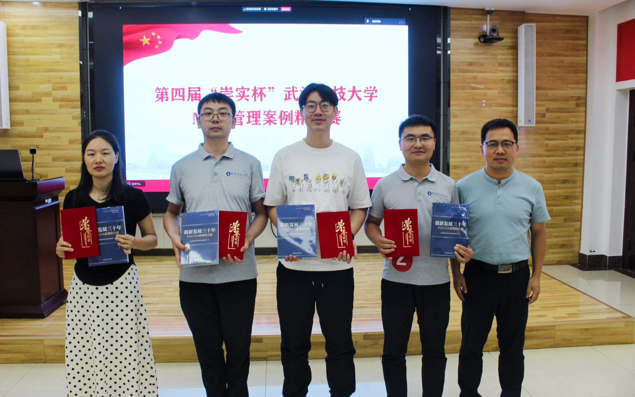 智研组(队长:余鹏程,队员:王乙智、彭杰、汪宏达、程云鹏)、渝豫江城盟队(队长:陈燕,队员:周雅敏、王乐、方敏、王远鹏)、现金流炼金师队(队长:谢炎轩,队员:刘景阳、徐攀、陈品锋、肖晶)、六人行队(队长:李晓芬,队员:杨凡、张玉明、李航、李华平)及龚民团队(队长:龚民,队员:韩国超、曹建林、赵思思、肖艳)等5支团队荣获三等奖,杨文、孙伟为团队代表颁奖。