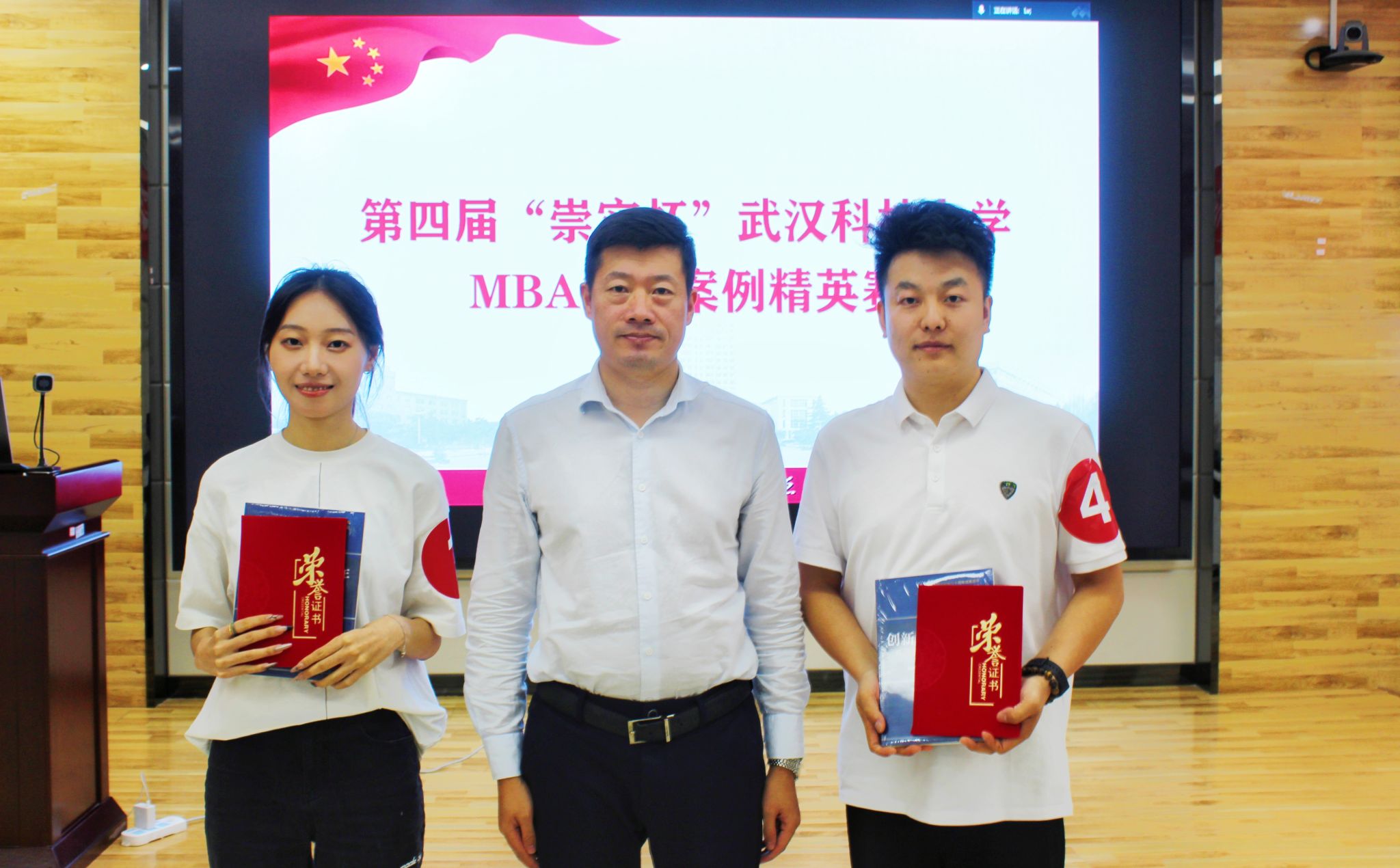 肖晶、龚慧敏、刘阳、丁雨薇等4位MBA同学荣获最有价值队员奖,刘海兵为个人代表颁奖。