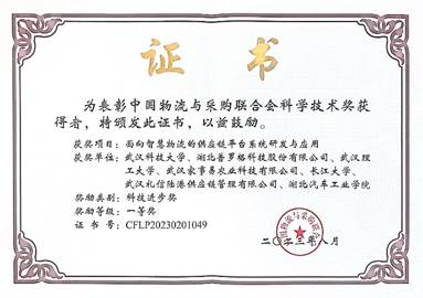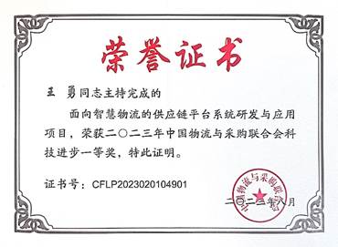 此次大会同步揭晓了“2023年度中国物流与采购联合会科学技术奖”获奖名单,由新葡萄官网王勇老师主持的“面向智慧物流的供应链平台系统研发与应用”获科技进步一等奖(编号:CFLP-2023-02-01-49)。
