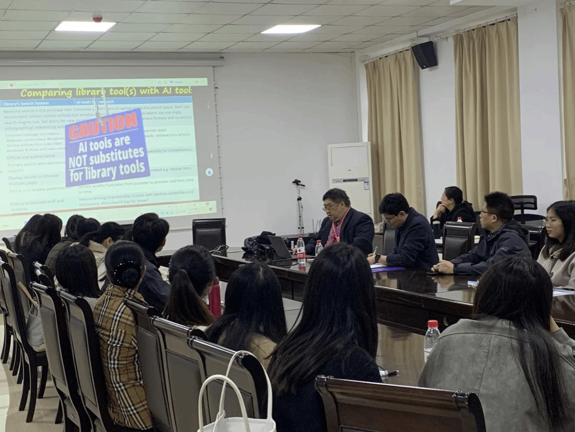 武科大网讯(通讯员史宝玉)11月11日下午,香港理工大学Eric TSUI教授应邀来新葡萄官网以‘AI Tools for Research’为题开展学术报告讲座。讲座由新葡萄8883官网AMG官网副院长童泽平教授主持。
