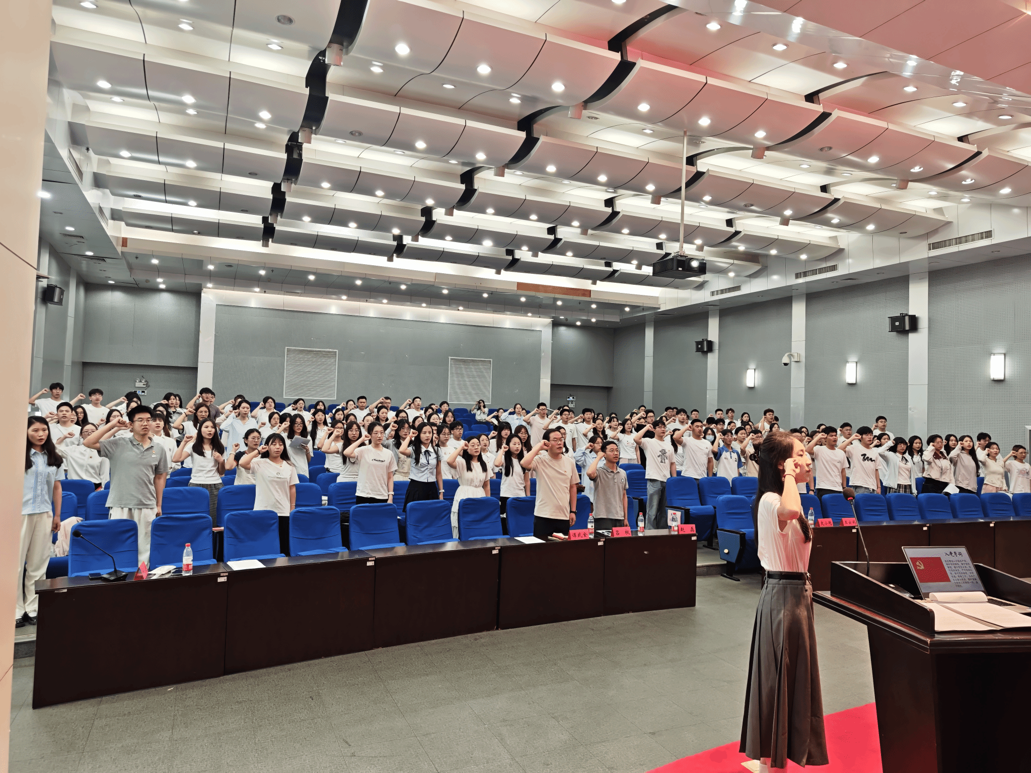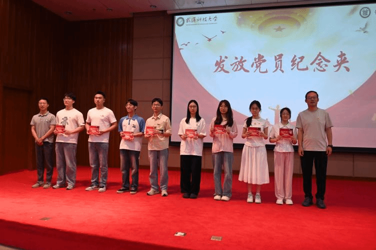 学院学生党总支为毕业生党员们精心准备了“党员纪念夹”,包括:一枚党徽、一本党章、一封独属于毕业生党员的信。谭武全、吕权为党员代表们颁发“党员纪念夹”,以表达党组织的殷切期望和美好祝福。全体党员佩戴上党徽,面向党旗庄严宣誓,重温入党誓词,铭记初心使命。